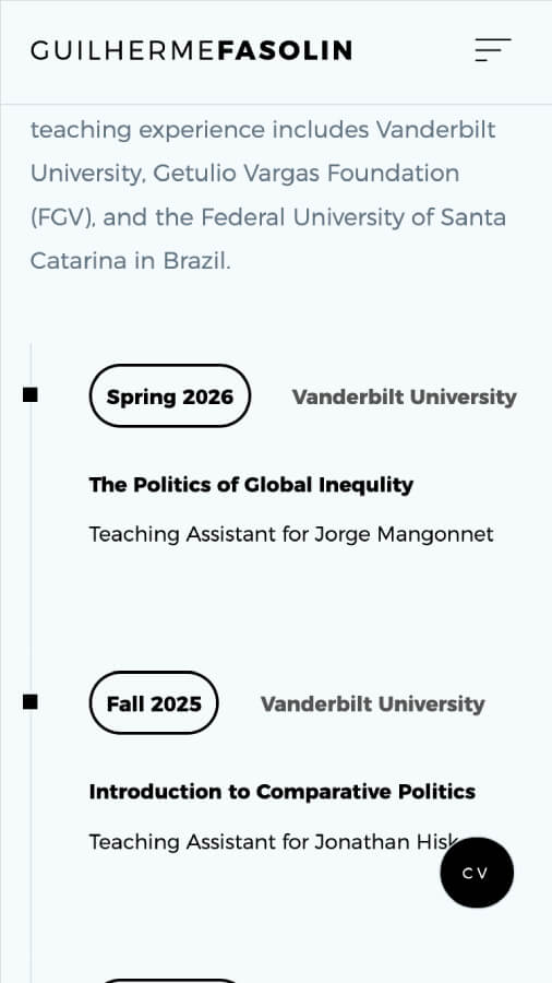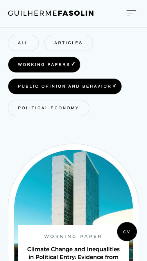 Guilherme wanted a professional and dynamic site that would showcase his many research publications, while simultaenously allowing users to filter through results based on custom categories.